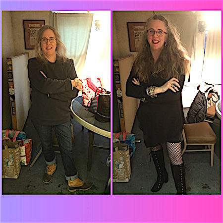 On December 31/January 1 my radio co-host and boyfriend Ron Raymond, Jr. and I hosted a nine-hour New Year's Eve Dance Party on WMPG. Initially we were just subbing for DJ Shaxx at 9:00, but then the Ben, the 7:00 guy, needed a sub, and Theo, the 11:00 guy, also wanted a sub, and when Paul, the 5:00 guy, found out we were doing everyone else's show, he politely asked if we would sub his show. And of course we did! And when the 1:30 am guy didn't show until 2:15, it turned into over 9 hours. By then I had changed back into a pumpkin; it was well below zero and I was tired and crabby and cold and I put my pre-show outfit back on.